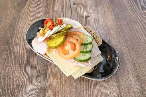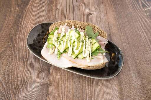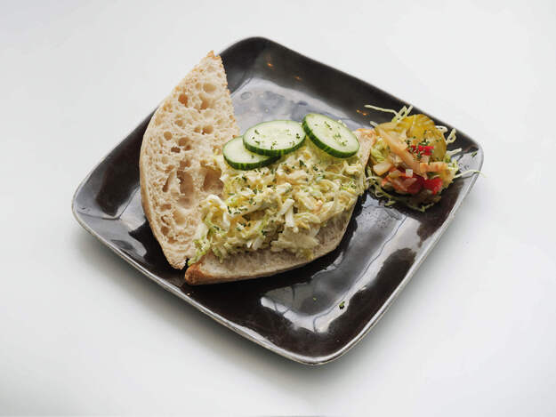 Broodje kaas met zoetzure komkommer en mosterdsaus