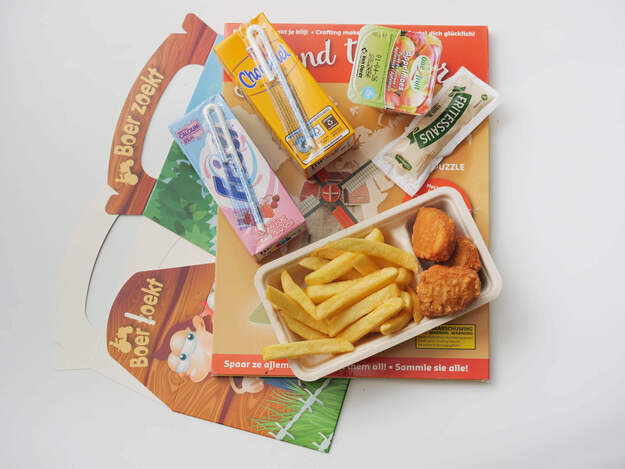 Lekkere snack, klein portie friet, frietsaus en een verrassing