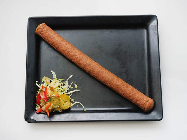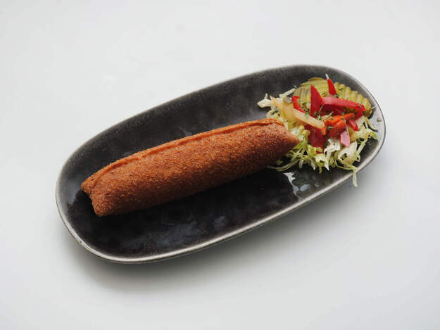 Broodje met onze grillbikkel, honing mosterdsaus, sla en rode ui